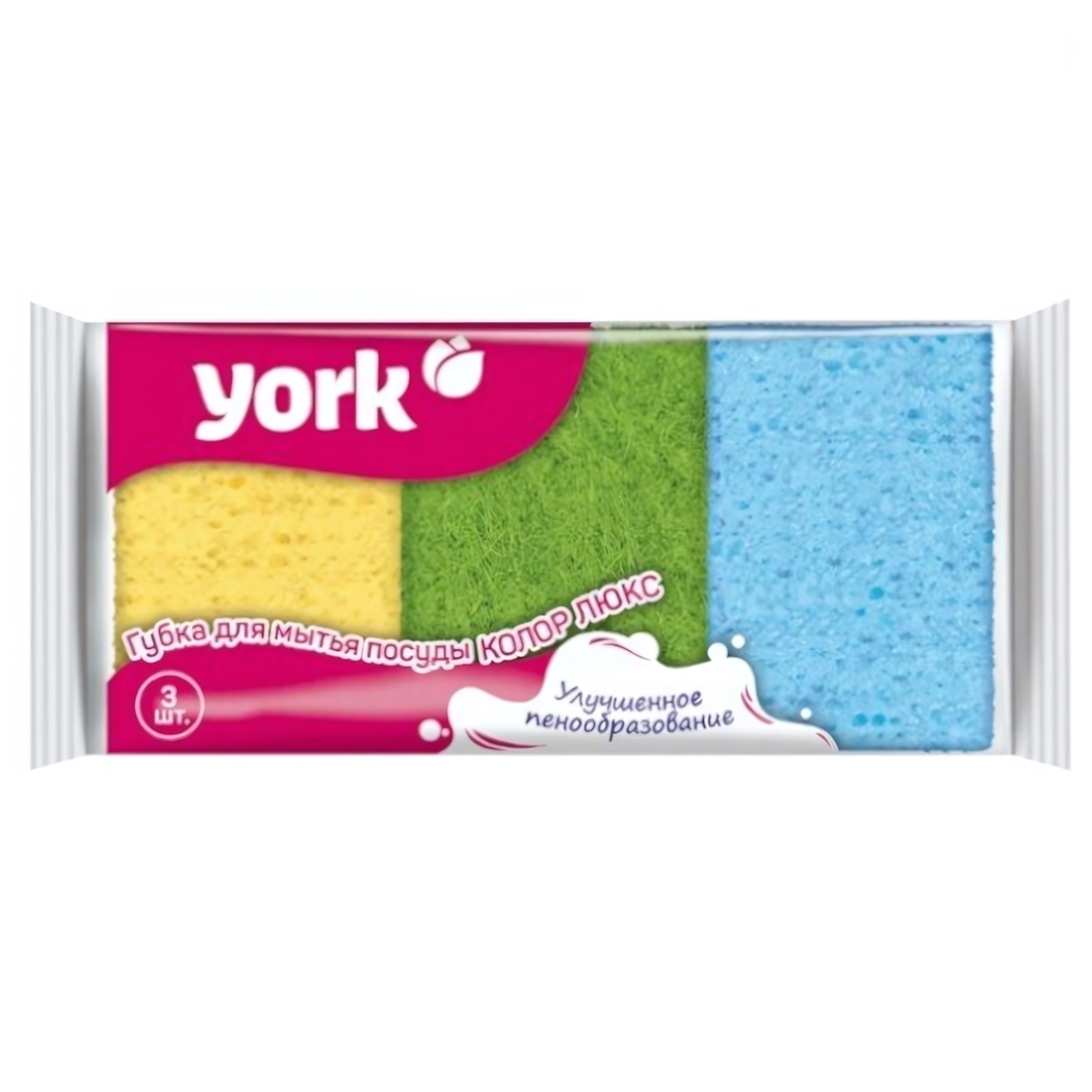 Губки для посуды «Колор Люкс», набор 3 шт, 10х7х3 см, поролон 22кг/м³, фибра 500г/м², экономия моющего средства