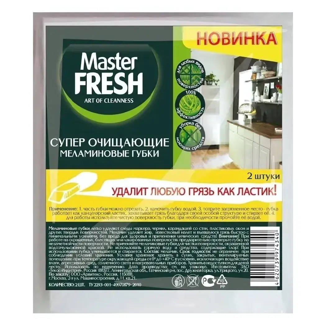 Губка меламиновая «Master FRESH», набор 2шт, эффект ластика, повышенная плотность 10г/м³
