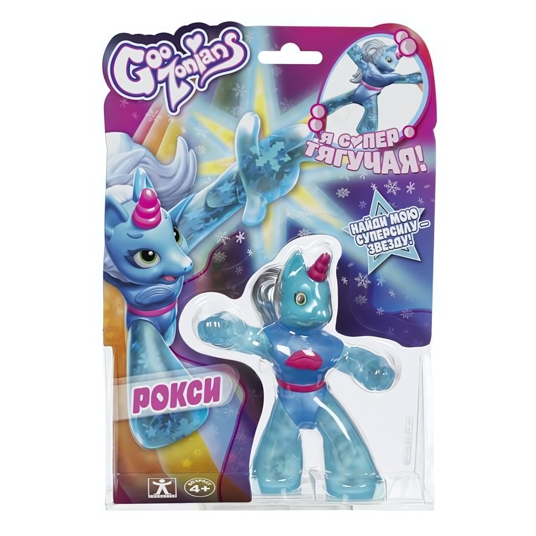 Фигурка Рокси выполнена в светло-голубом цвете с ярко-розовым рогом и детализированными чертами лица. Она легко растягивается до 3-х раз, а затем возвращается в свою первоначальную форму. Это делает игру еще более интересной и разнообразной. Рокси обладает уникальным Гу-наполнителем с блестками, что добавляет ей особый шарм и привлекательность.