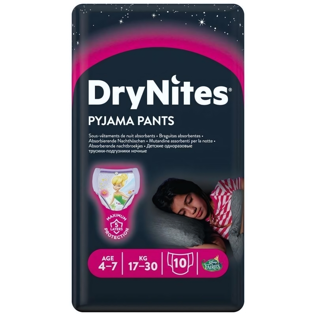 Трусики-подгузники 'DryNites' для девочек 4-7 лет, 17-30 кг, 10 шт.