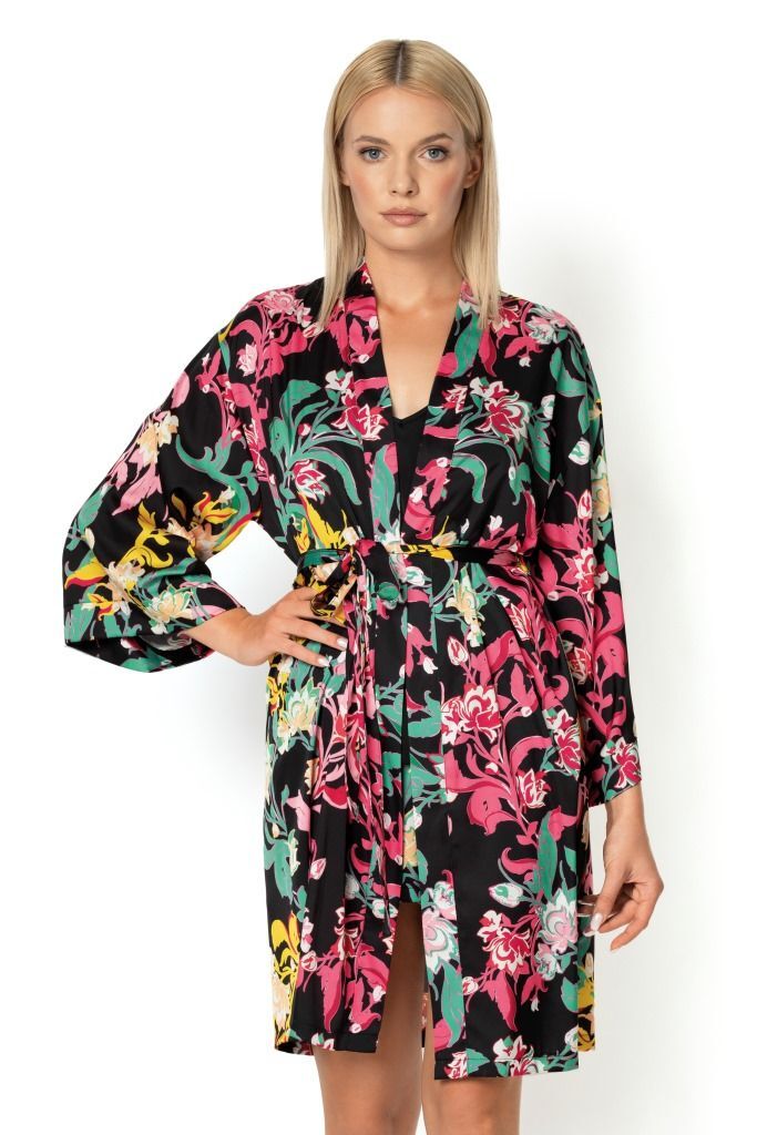 Халат "Clarisa" с цветочным принтом, размер L, черный, полиэстер/эластан, свободный крой