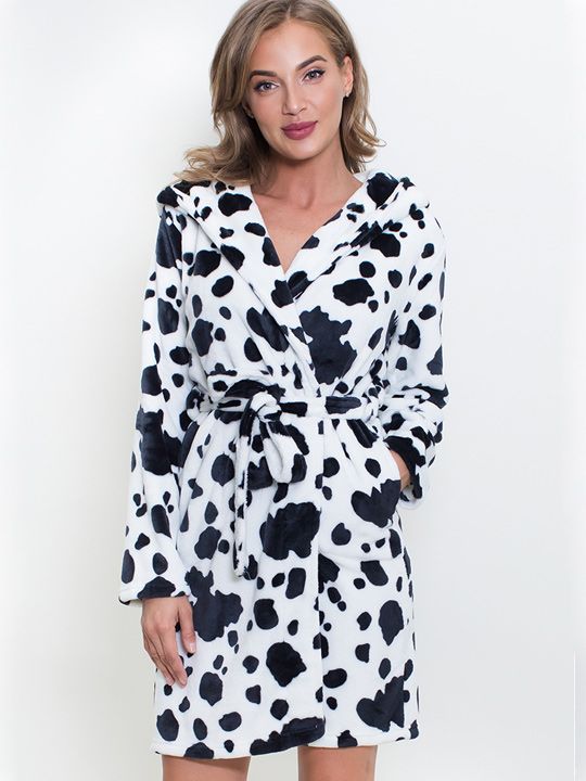 - Яркий дизайн: Принт "далматинец" делает халат стильным и необычным элементом домашнего гардероба.