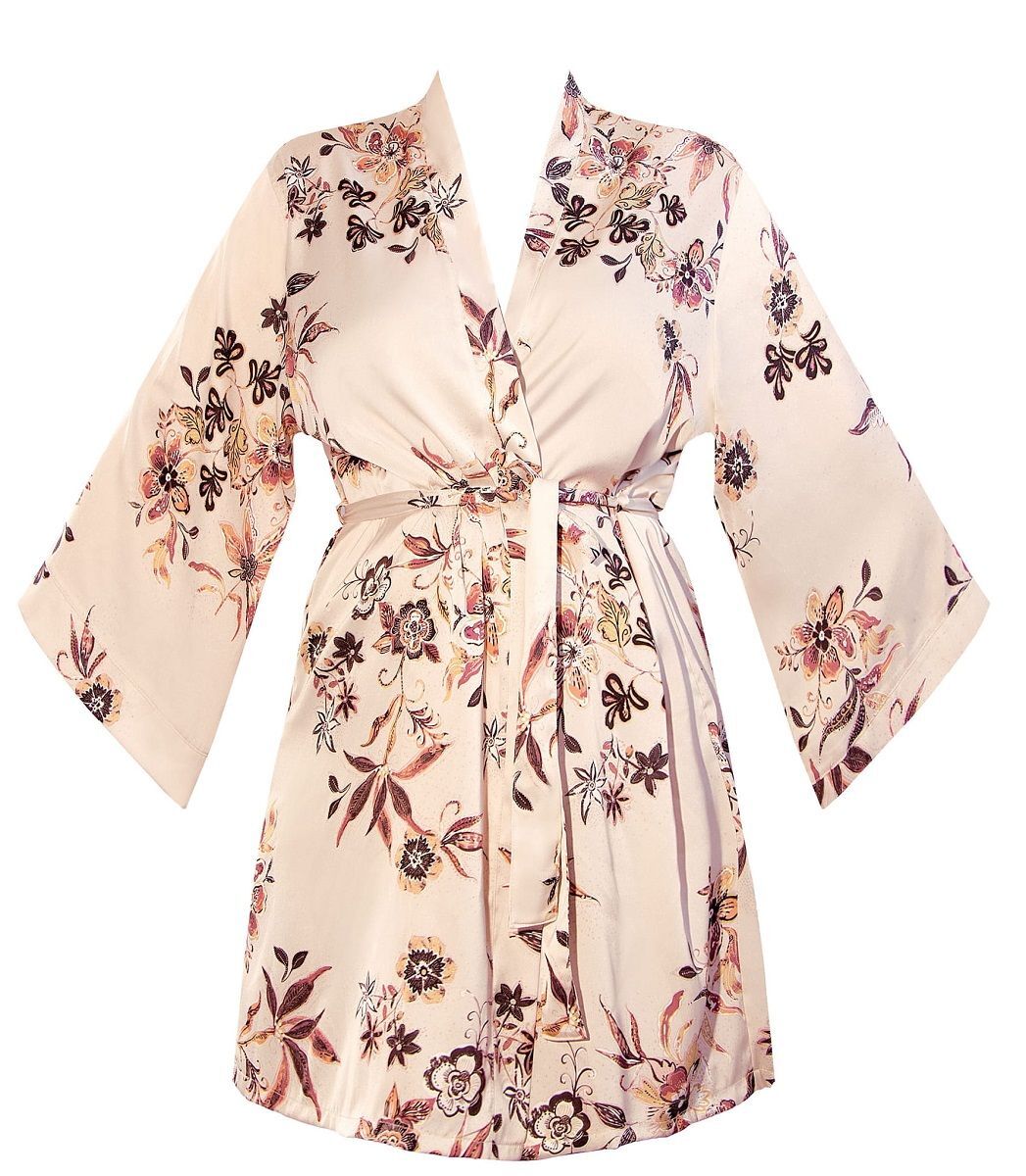 Халат-кимоно Nipplex 'Xiana' с цветочным принтом, размер L, бежевый, полиэстер/эластан