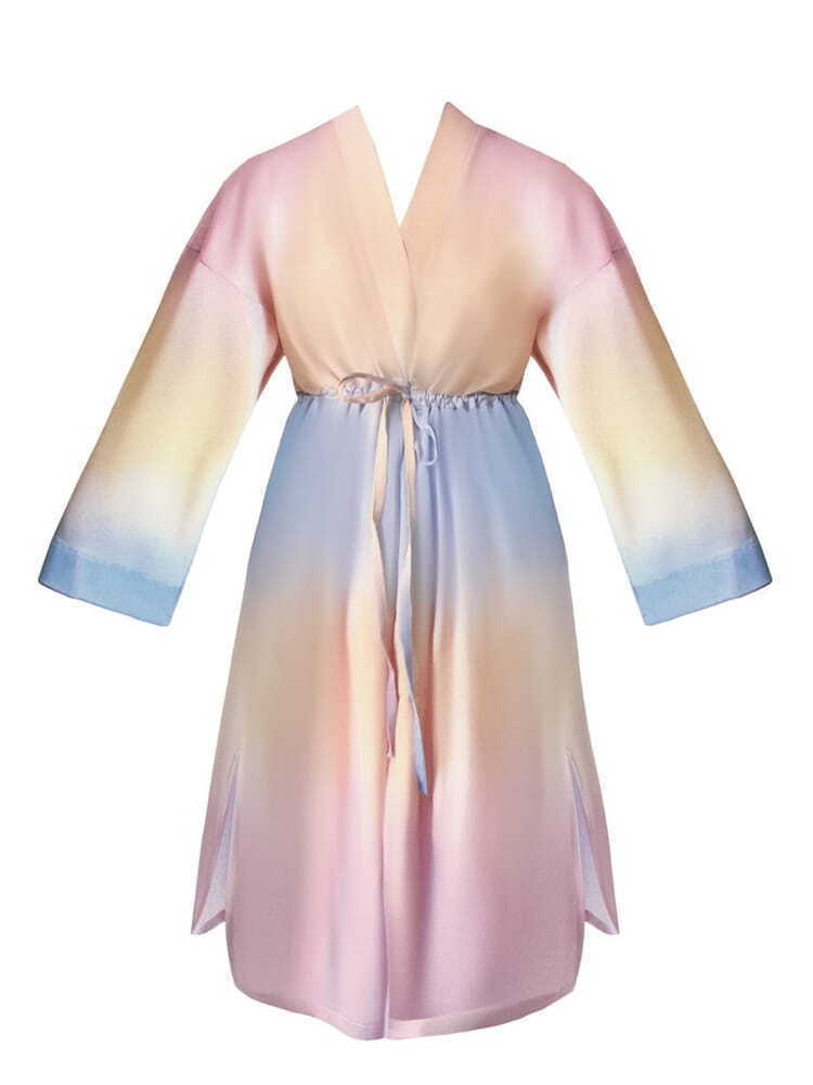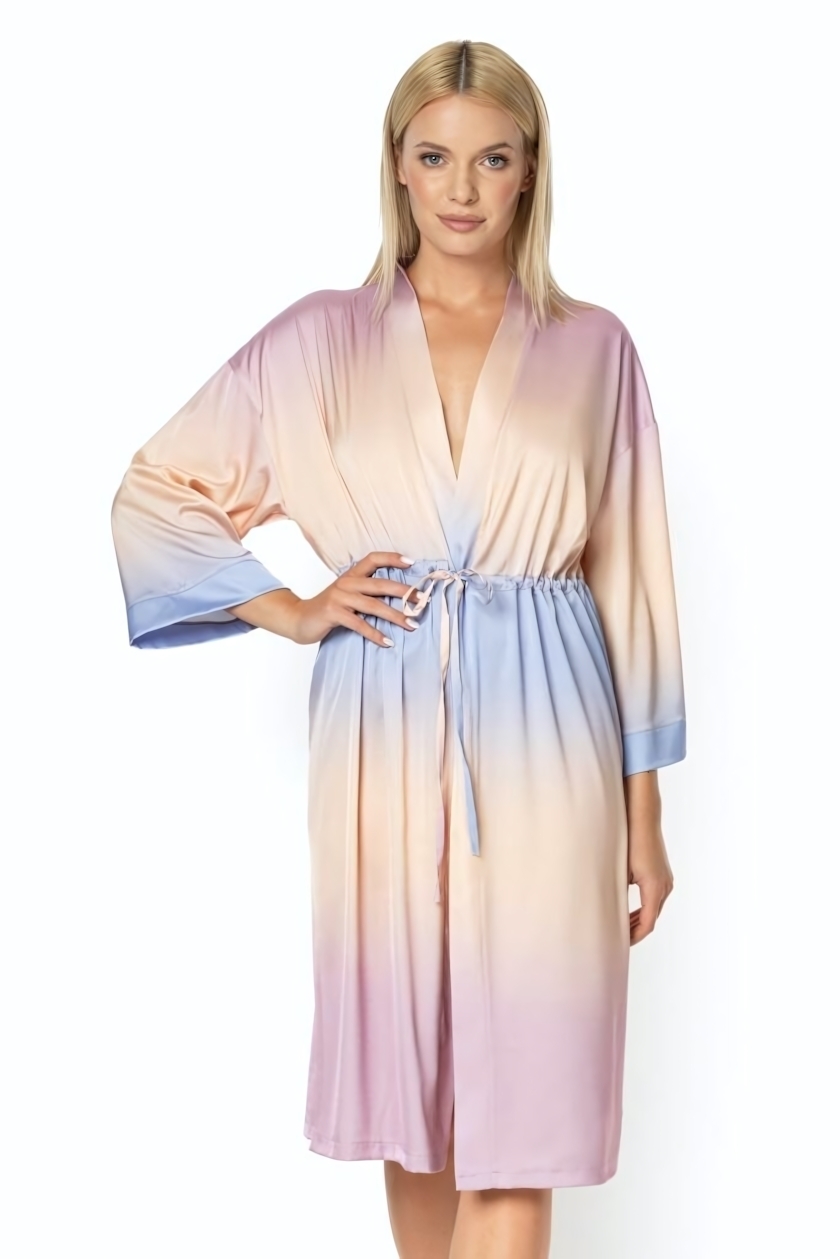 Халат-кимоно «Zora» с регулируемым поясом, градиентный розово-голубой, полиэстер/эластан, размер L-XL