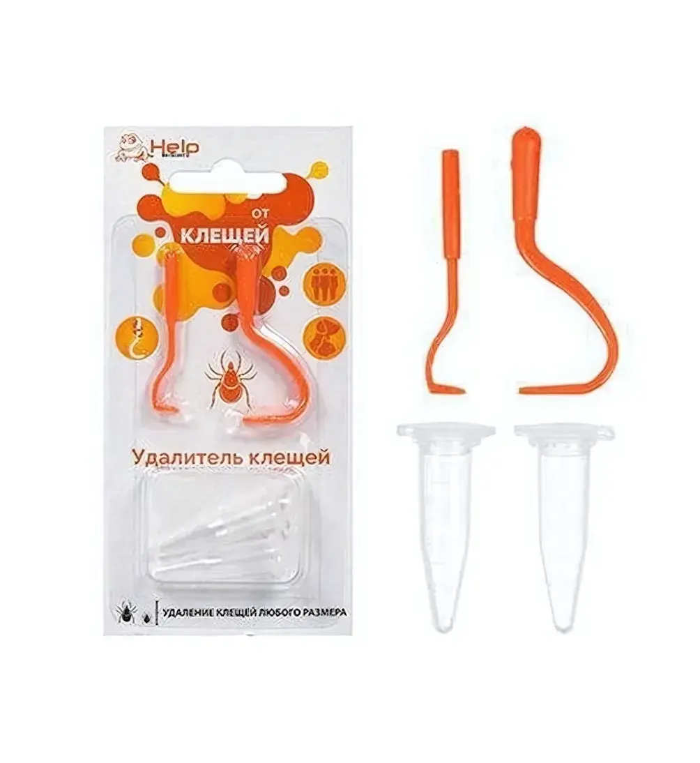 Надежный комплект инструментов 'HELP' защитит вас и ваших близких от опасных последствий укусов клещей. Простой и эффективный способ быстро извлечь паразита без риска раздавить его.