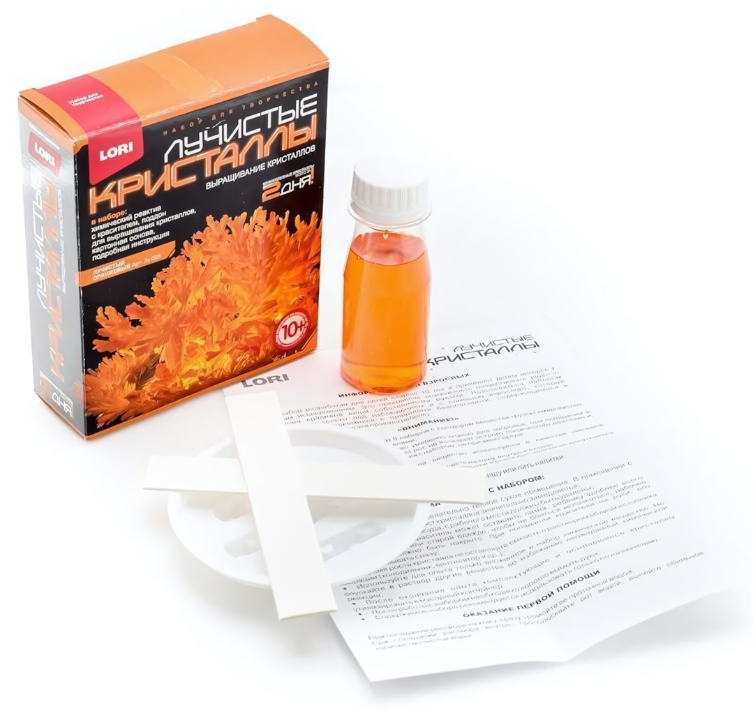 Набор для опытов «Лучистые кристаллы»: выращивание оранжевого кристалла, 10+, реактив и инструменты