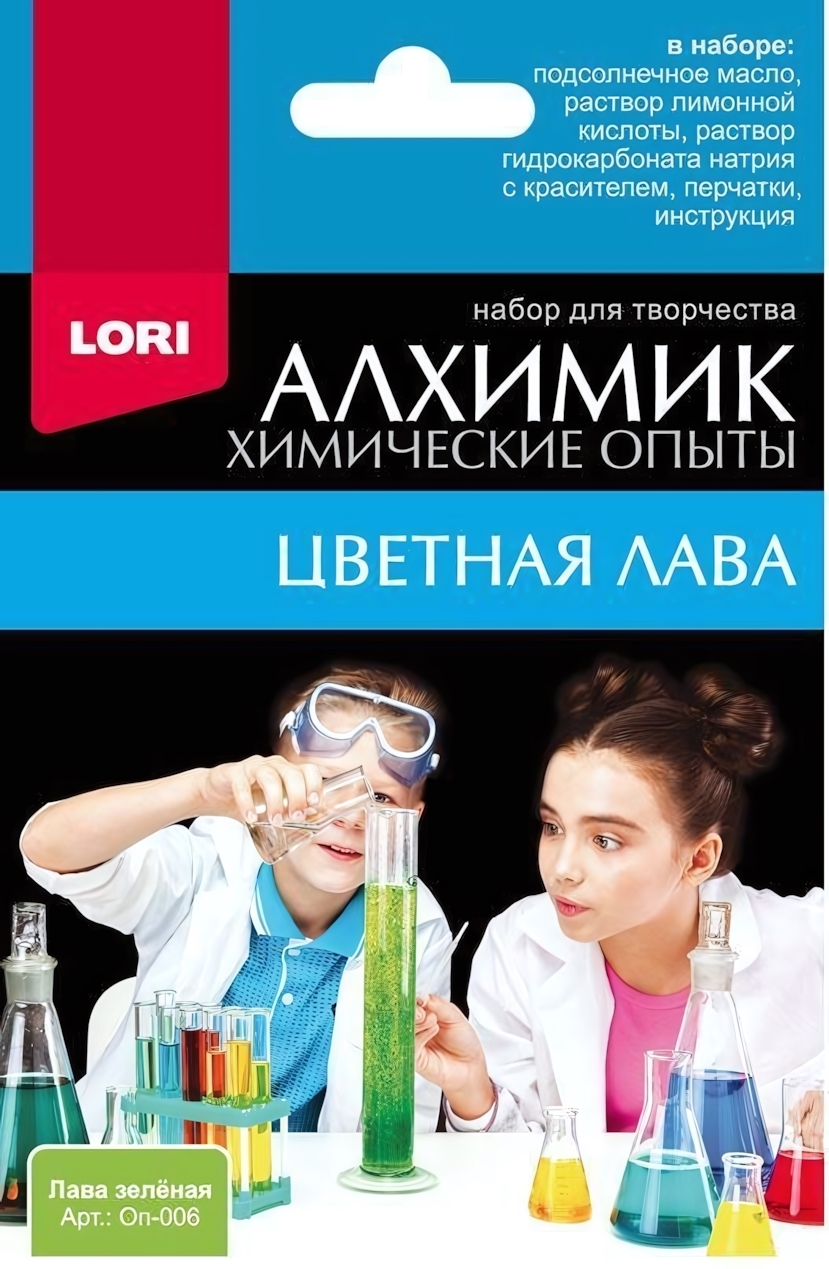 Набор для опытов "Цветная лава", зеленый, с инструкцией и защитными перчатками