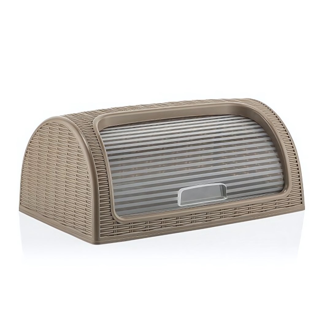 Хлебница имеет полукруглую форму и достаточно вместительна, чтобы вмещать несколько батонов хлеба. Она идеально подходит для хранения как домашнего, так и магазинного хлеба. Плетеная текстура придает ей особый шарм, а коричневый цвет легко впишется в любой интерьер кухни.