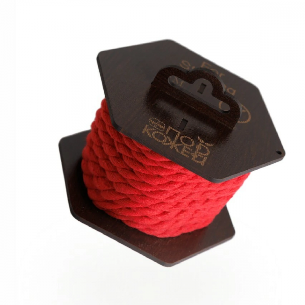 Длина веревки составляет 5 м — этого достаточно для создания эффектных фиксаций. Толщина 8 мм обеспечивает баланс между надежностью и гибкостью. Материал — хлопок, который ценится за натуральную текстуру и приятные тактильные ощущения. Яркий красный цвет подчеркивает эстетику шибари и добавляет визуальной выразительности каждой сцене.