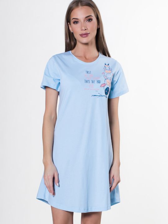 - Яркий принт: Стильный дизайн с оригинальным рисунком и надписью добавляет изюминку и делает сорочку не просто домашней одеждой, а модным элементом гардероба.