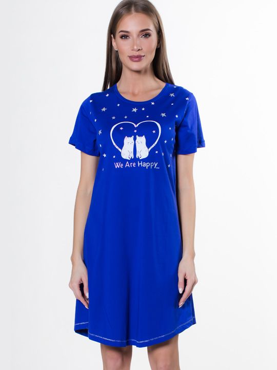 Подарите себе ощущение лёгкости и уюта с этой женской сорочкой из натурального хлопка. Модель с милым принтом и жизнеутверждающей надписью создана для того, чтобы вы чувствовали себя счастливо и расслабленно в любой день. Свободный крой и мягкая ткань обеспечивают полную свободу движений, делая её идеальным выбором для отдыха дома, утреннего кофе или спокойного вечера с книгой.
