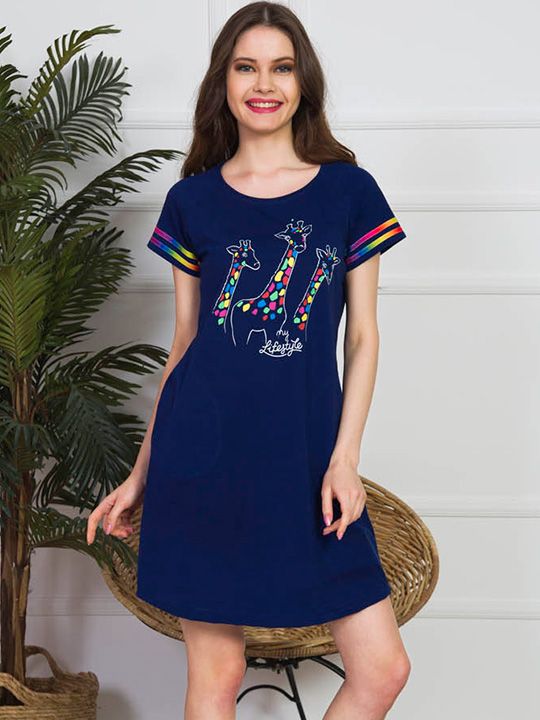 Сорочка женская хлопковая с коротким рукавом, принт "жирафы", размер L, цвет темно-синий