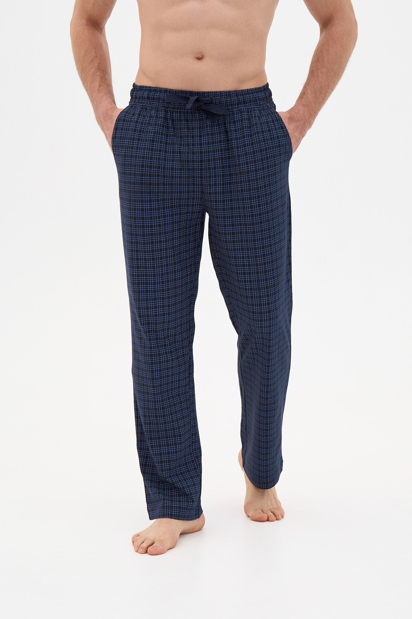 Мягкие и приятные к телу хлопковые брюки в классическую клетку обеспечивают комфорт и свободу движений для дома и прогулок.