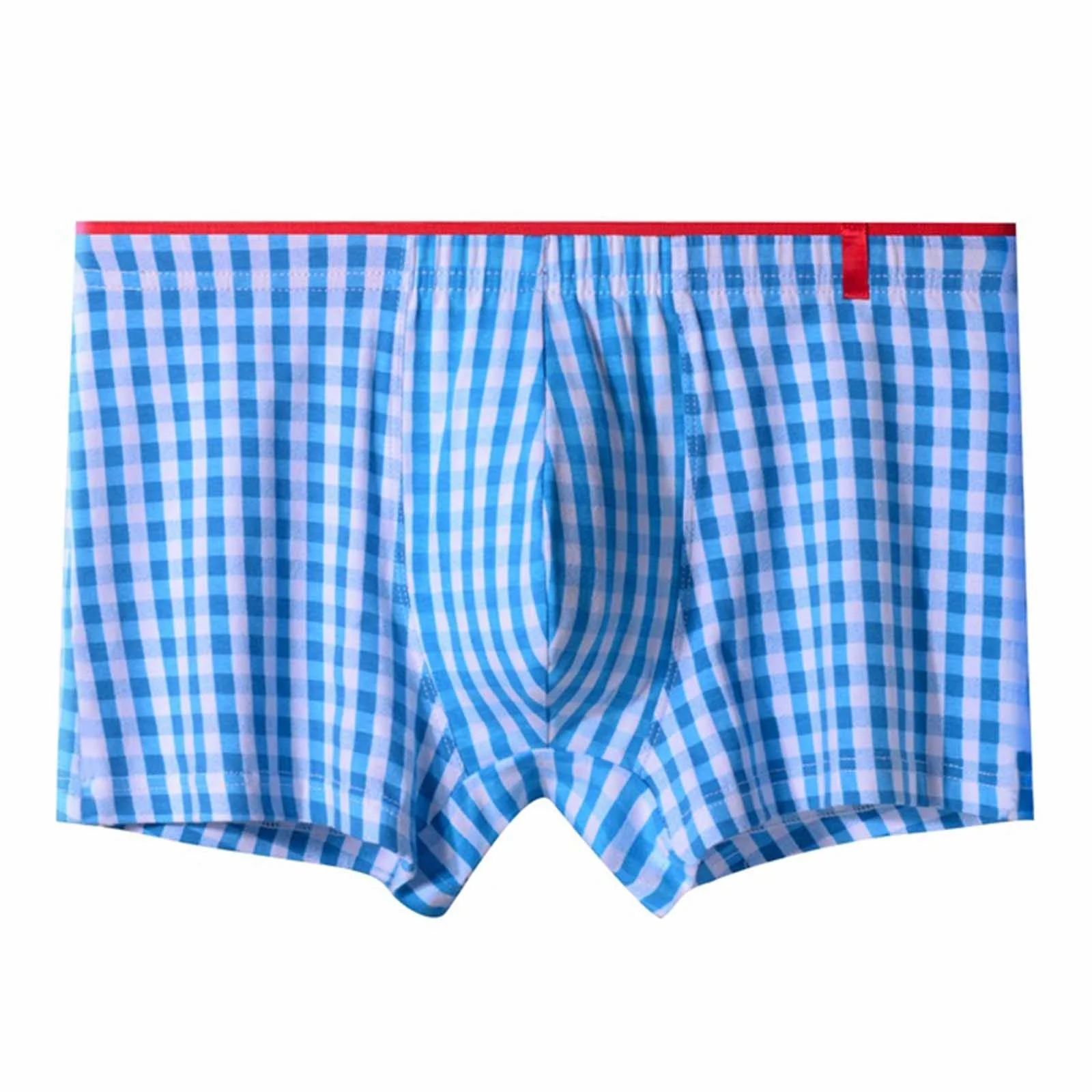 Хлопковые мужские трусы-боксеры в мелкую клетку, размер L, голубой