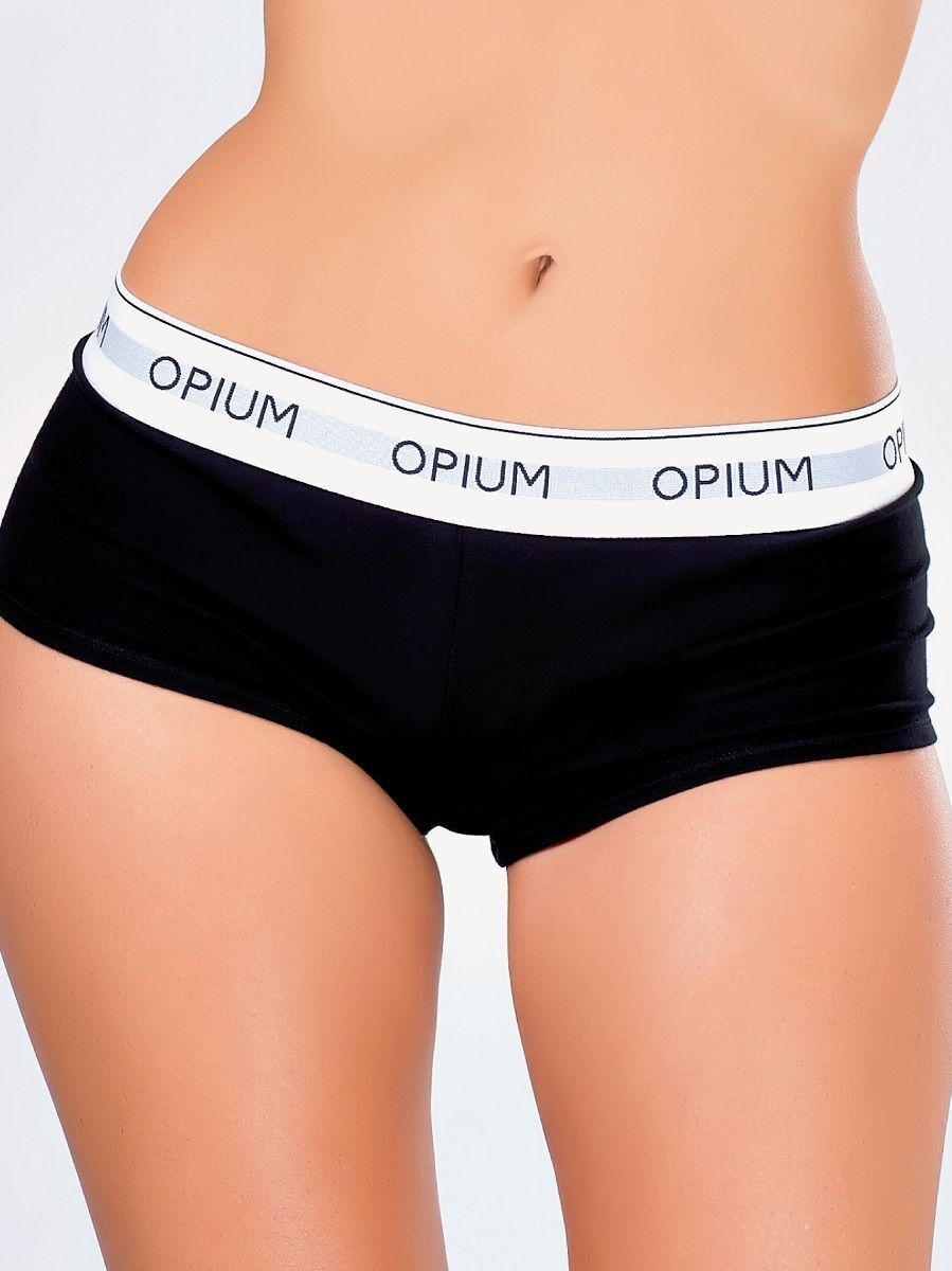 - Широкая резинка с логотипом Opium добавляет стильный акцент.