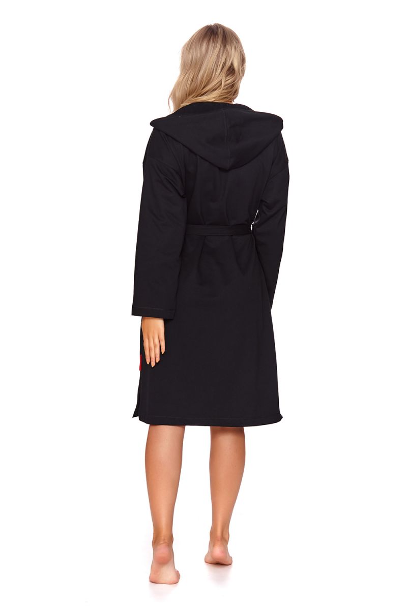 Халат хлопковый с капюшоном и съемным поясом, черный, размер l, 100% хлопок, удобные карманы