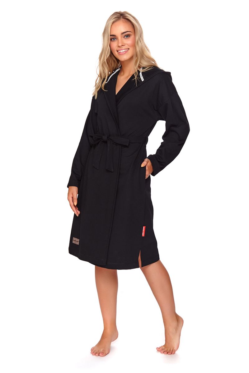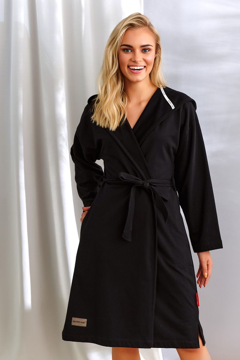 Халат представлен в черном цвете — классическом и практичном оттенке, который сочетается с любым интерьером. Размер M обеспечивает комфортную посадку для большинства женщин. Произведено в Польше с вниманием к деталям и качеству пошива.