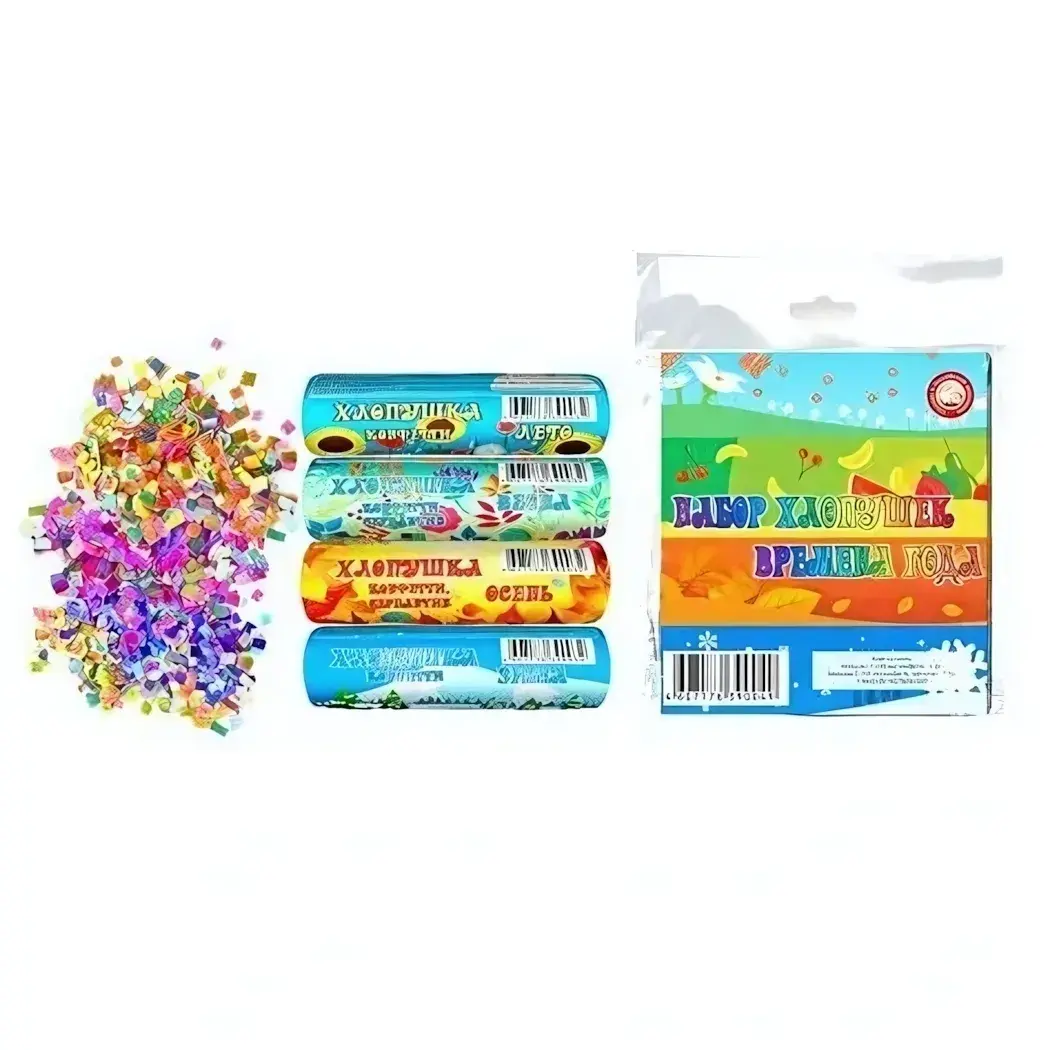 Сделайте каждый праздник ярче и запоминающимся вместе с набором хлопушек «времена года» — ваш персональный источник веселья и света!