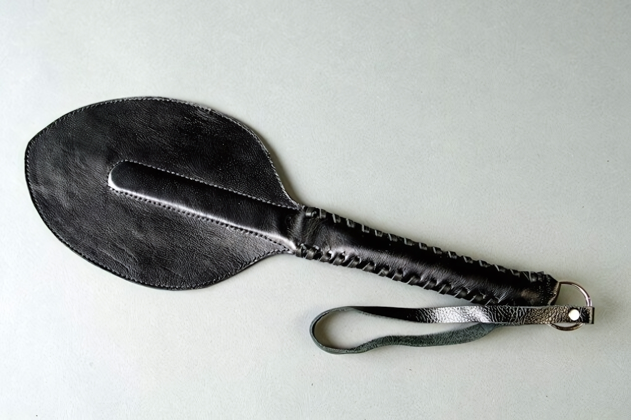 Хлопушка выполнена из натуральной кожи и металла, что гарантирует ее долговечность и высокое качество. Размеры: общая длина 39 см, ширина 13,7 см. Этот аксессуар станет отличным выбором для пар, которые хотят разнообразить свои интимные моменты.