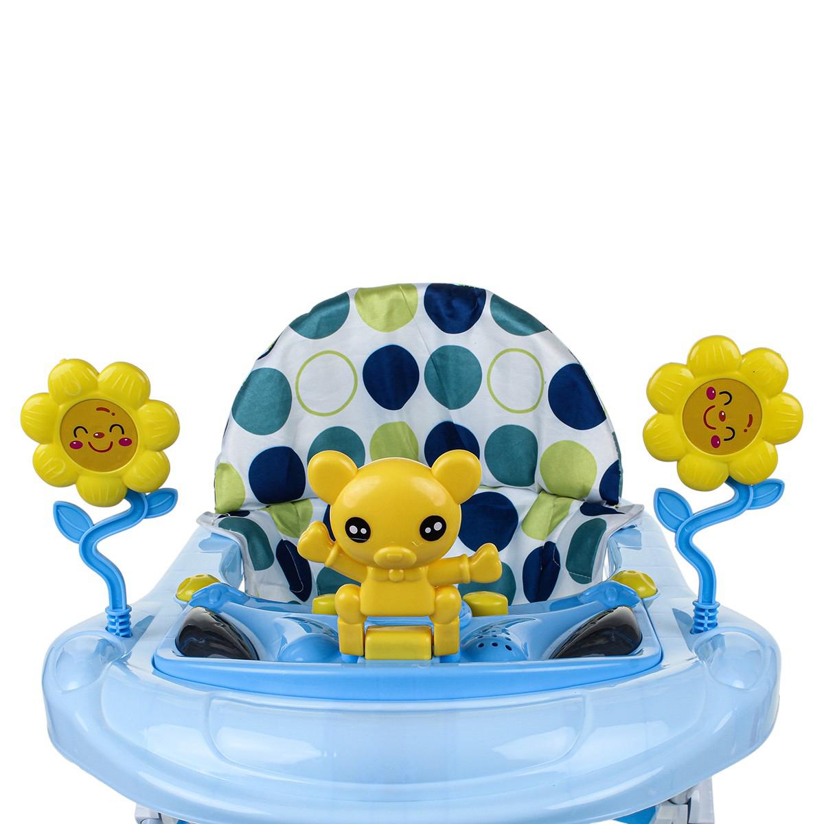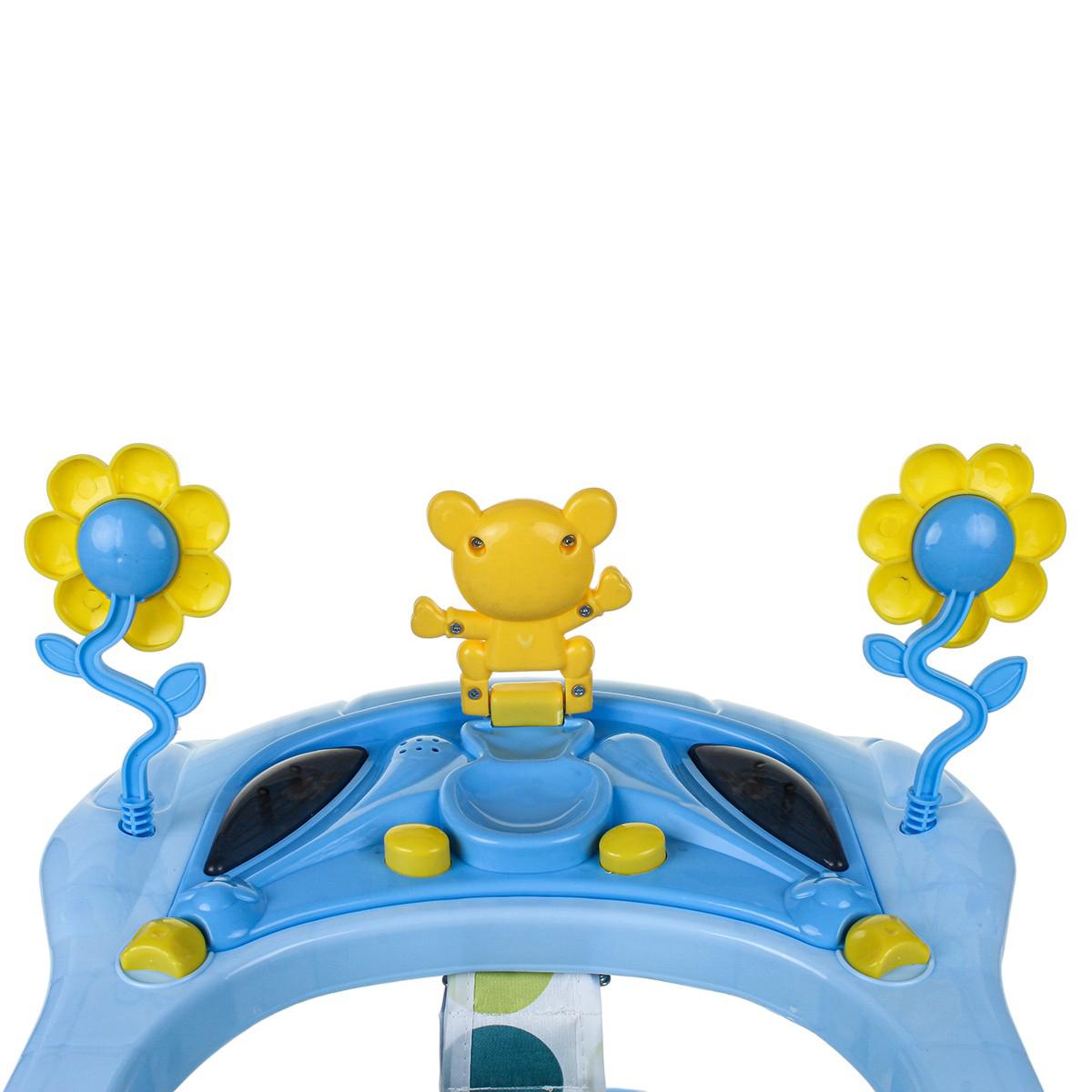 - Интерактивный игровой модуль: яркие, вращающиеся элементы с веселыми изображениями превратят каждое использование ходунков в увлекательную игру.