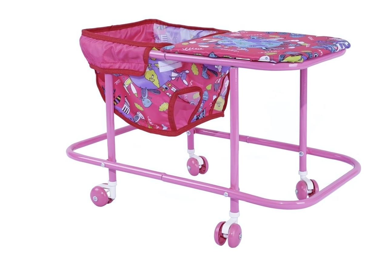 Ходунки квадратные №1 имеют прочный металлический каркас, который обеспечивает надежность и долговечность. Четыре колеса, окрашенные в розовый и белый цвета, позволяют легко перемещать ходунки по дому, а складной столик с яркими мультяшными персонажами добавляет элемент веселья в игру. Эти ходунки подходят для детей от 1 года и старше, что делает их идеальным выбором для активных малышей.