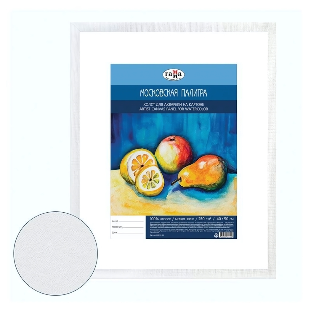 Холст для акварели 40*50см, мелкое зерно, 100% хлопок, 'Московская палитра'