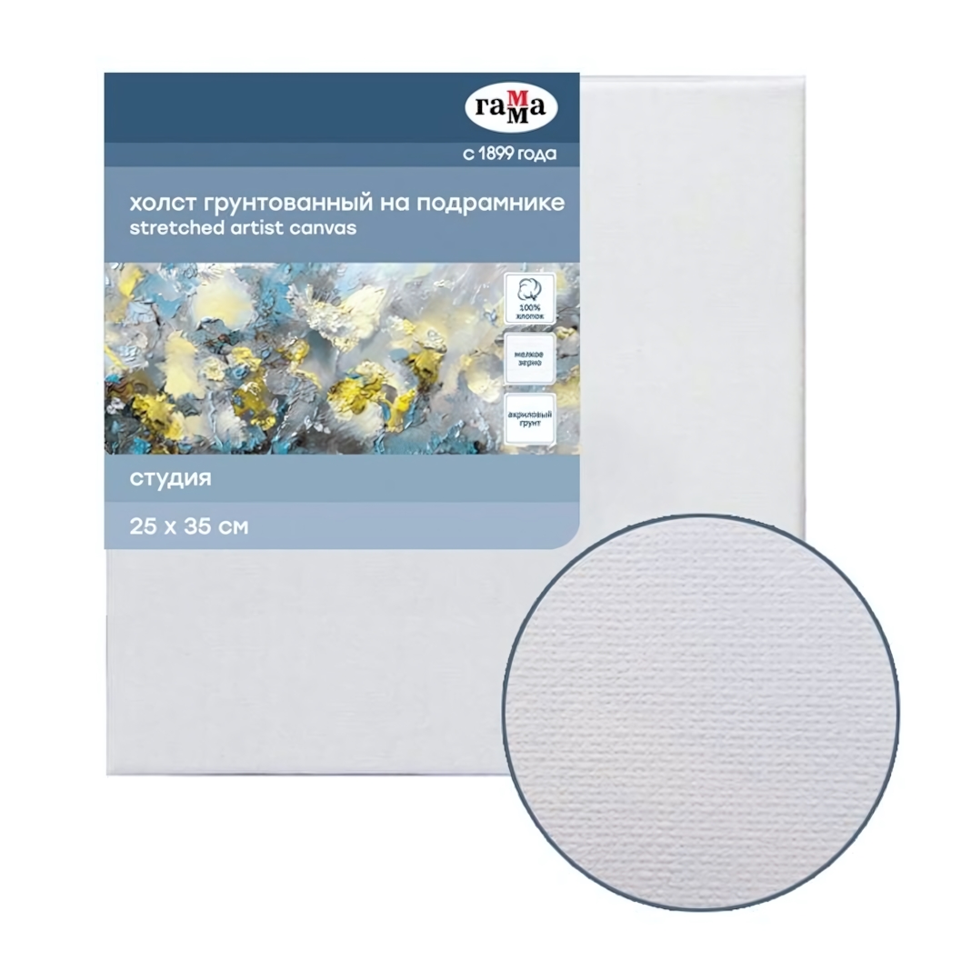 Холст художественный «Студия» 25x35 см, 100% хлопок, грунтованный, мелкое зерно, 280 г/м²