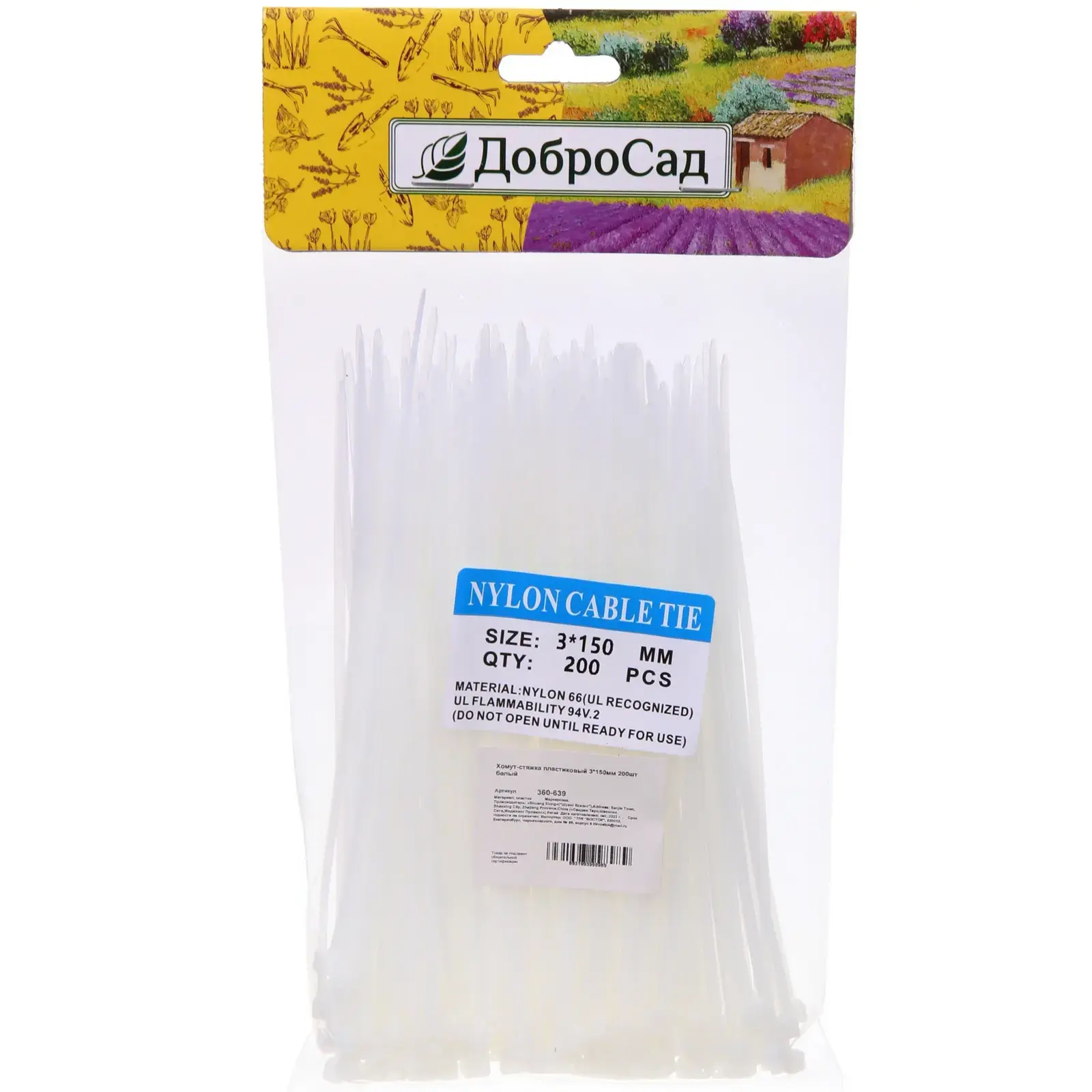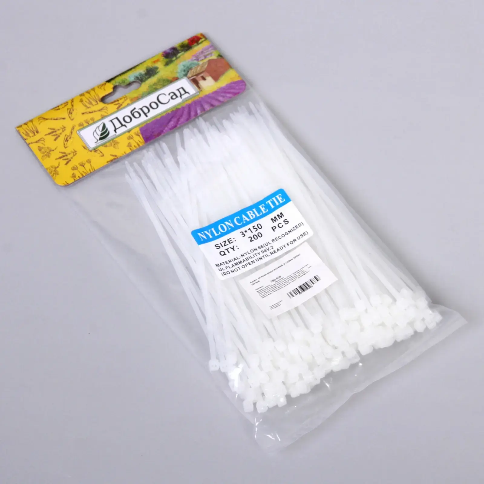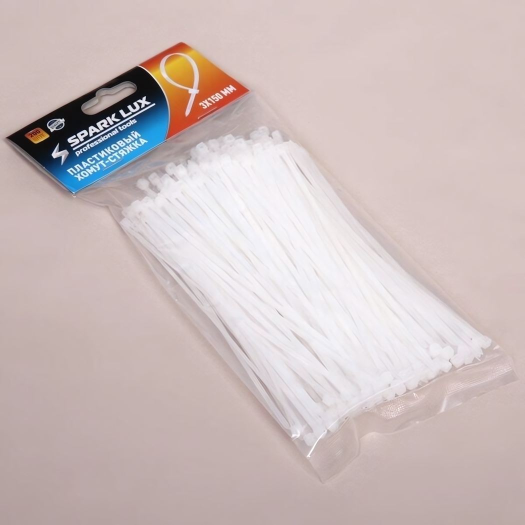 Каждый хомут имеет гладкие края, которые не повреждают поверхности. Белый цвет сохраняет эстетику даже при использовании на видных местах. В упаковке — 200 стяжек в прозрачном пакете с подвесом для удобного хранения. Материал допускает вторичную переработку, что делает выбор экологически ответственным.