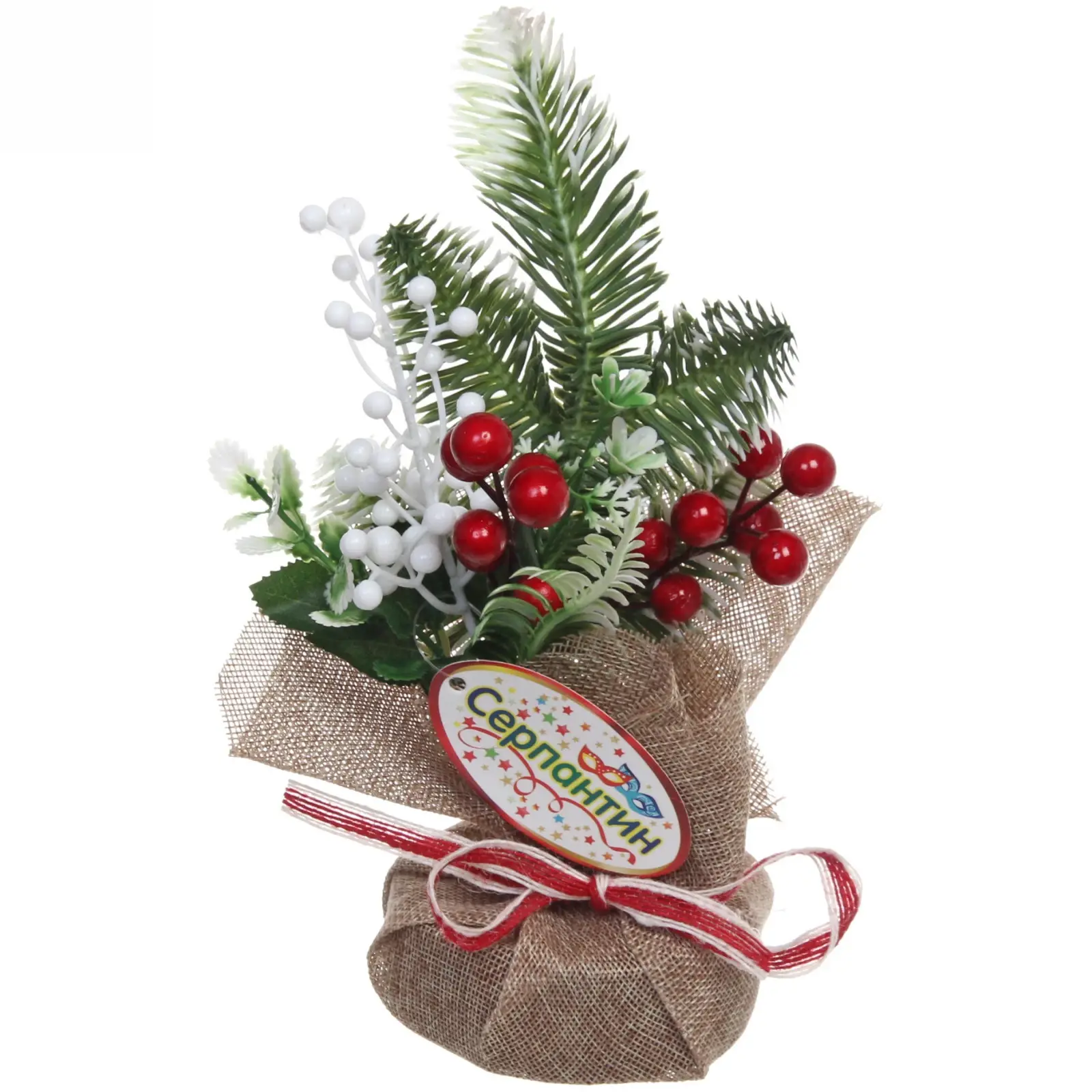 Размеры композиции составляют 25 см в высоту и 10 см в ширину, что делает её идеальной для размещения на столах, подоконниках или полках. Упаковка из мешковины с красной и белой лентой добавляет дополнительный шарм и делает композицию отличным подарком для ваших близких. Не упустите возможность украсить свой дом с помощью этого стильного и практичного элемента декора!