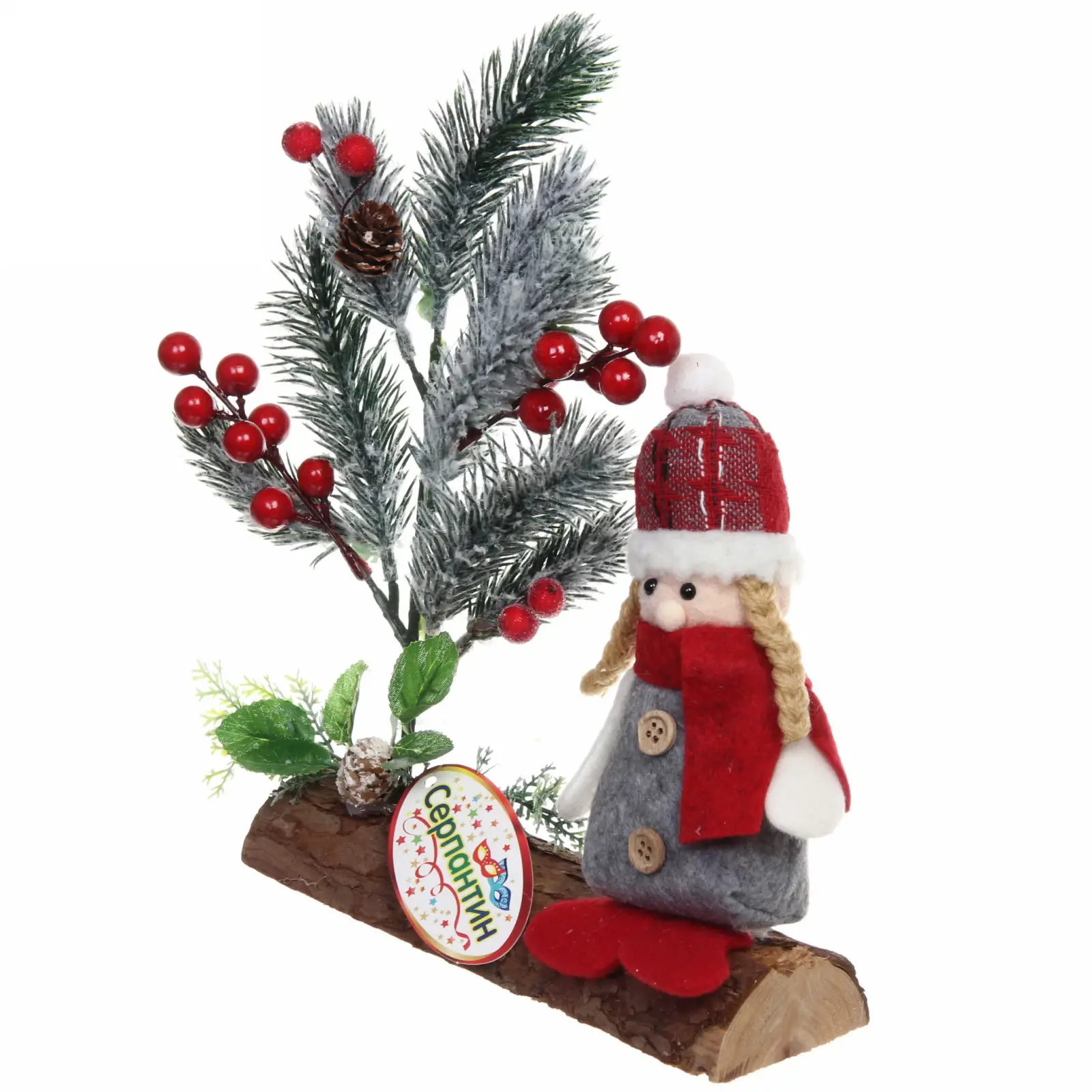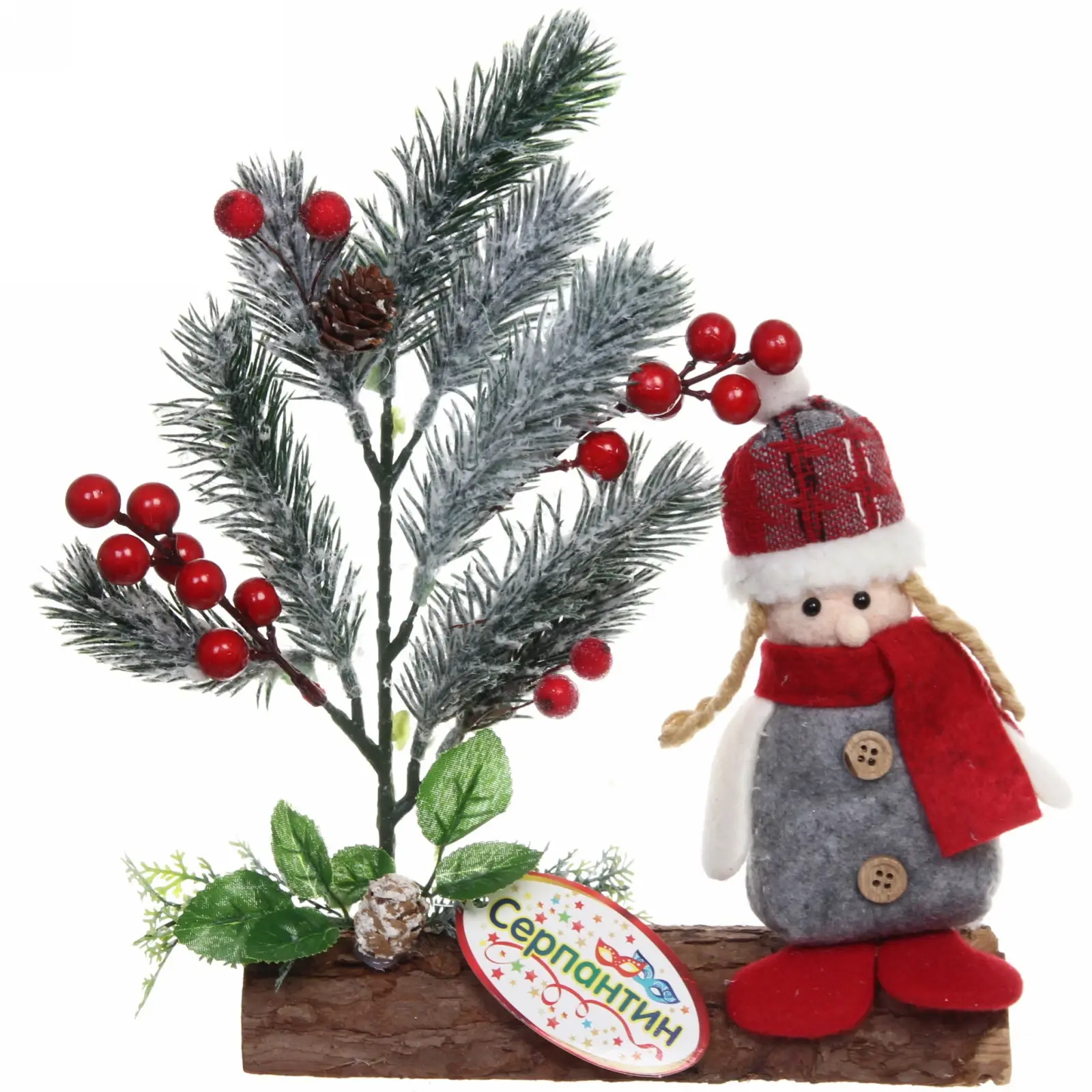 Композиция выполнена из качественных материалов, таких как ПВХ и текстиль, что обеспечивает долговечность и практичность использования. Она отлично подходит для украшения как жилых помещений, так и офисов. Вы можете разместить её на столе, полке или использовать в качестве центрального элемента новогоднего декора.