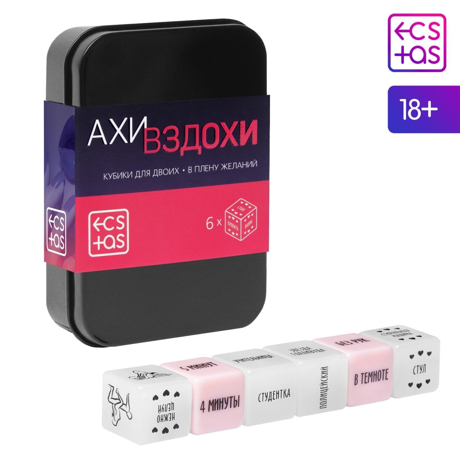 Набор кубиков для двоих «Ахи вздохи»: 6 пластиковых, разноцветные, эротическая игра в жестяной коробке