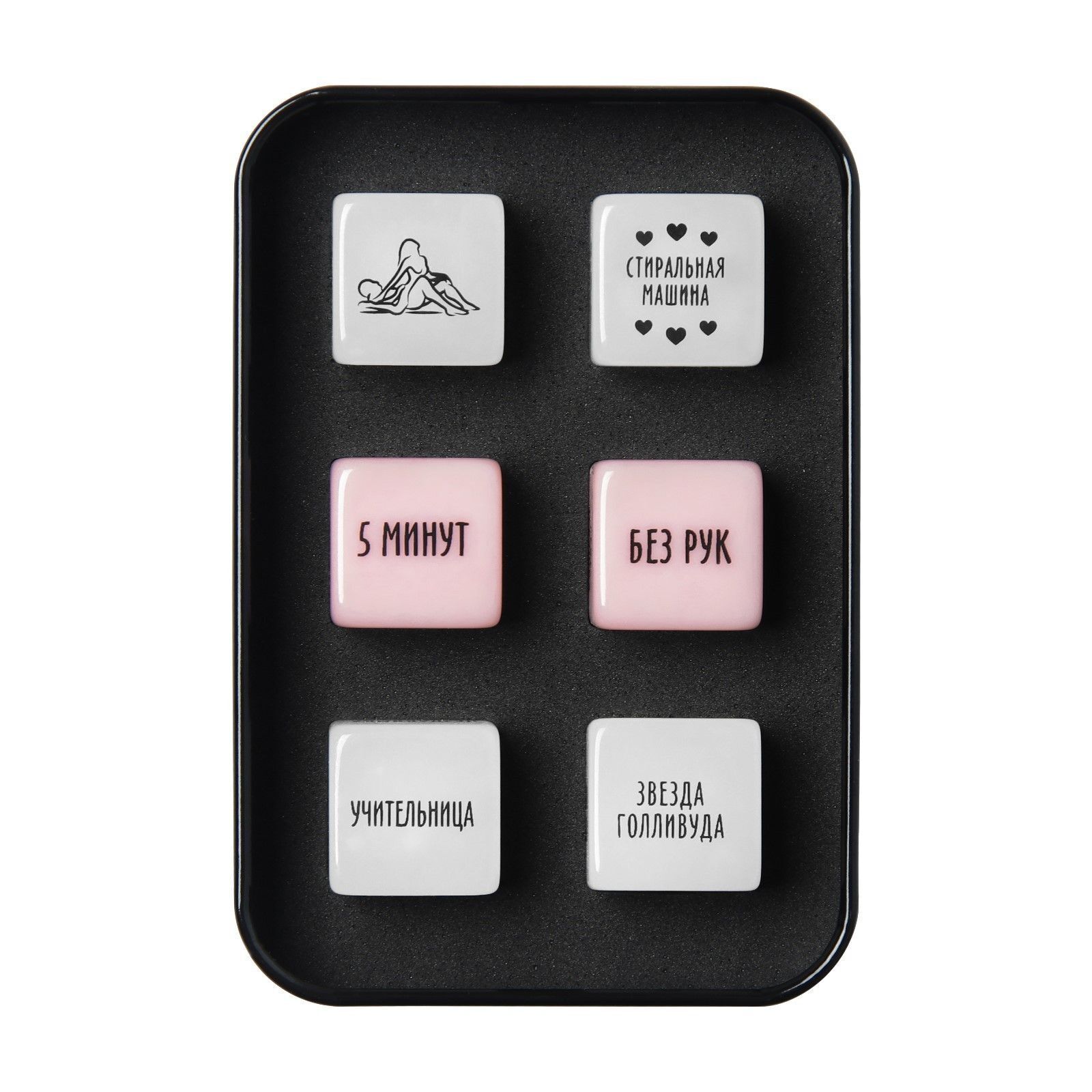 Идеальный выбор для пар, которые хотят выйти за рамки привычного сценария. Набор не требует подготовки – просто откройте коробку и позвольте кубикам направлять вашу фантазию. Стильный аксессуар для романтического вечера или необычного подарка.