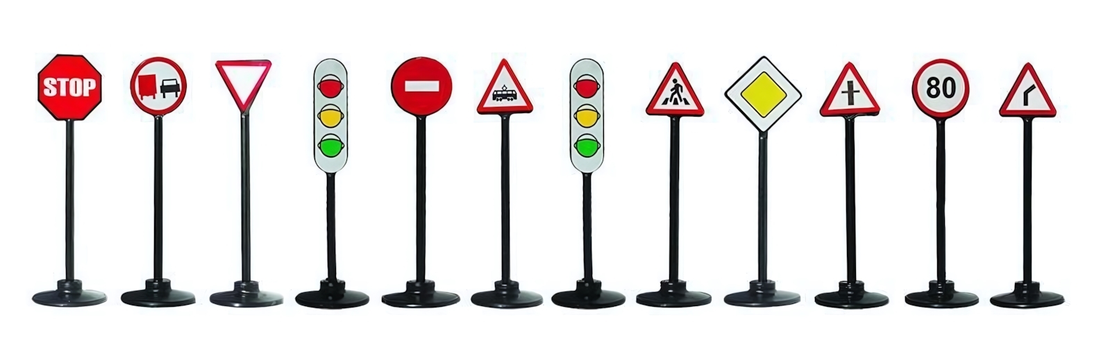 Размеры знаков специально разработаны для детских рук, а их реалистичный дизайн помогает лучше понять настоящие дорожные обозначения.