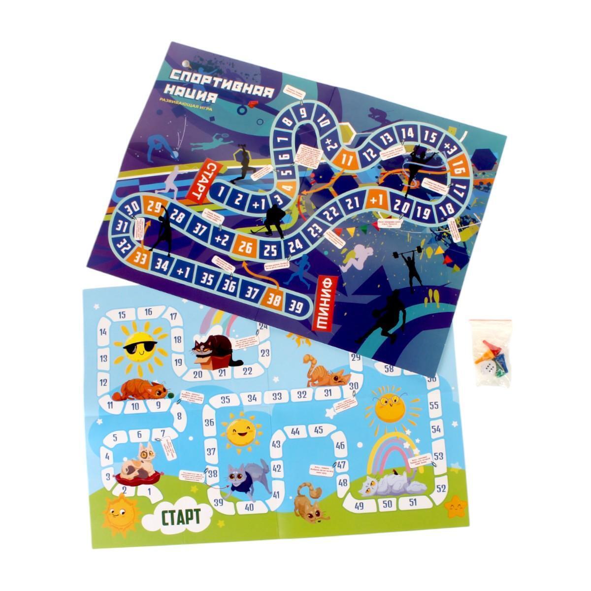 Настольная игра-ходилка 2 в 1 «Котейкины проказы», «Спортивная нация» с заданиями, дорожный формат