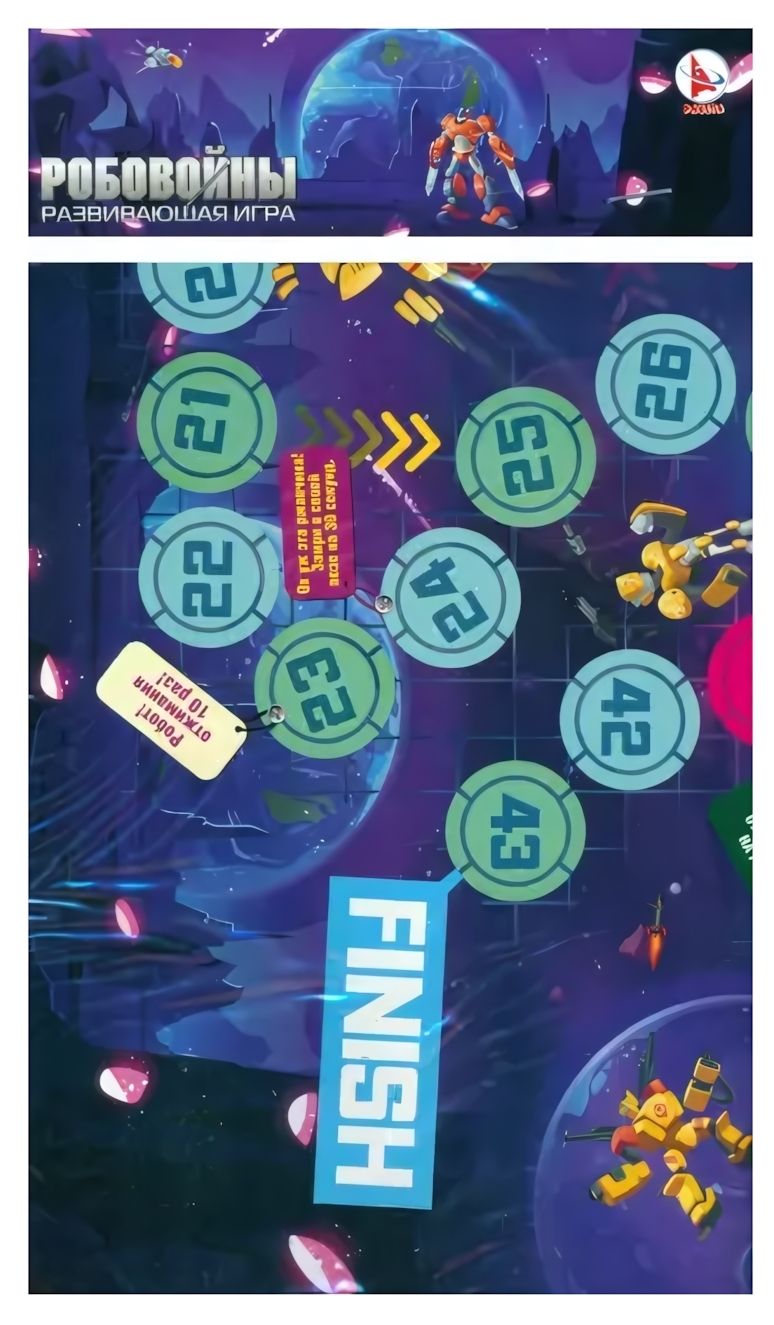 Настольная игра-ходилка "Робовойны", развивающая с заданиями, космическая тематика, 4 фишки, кубик