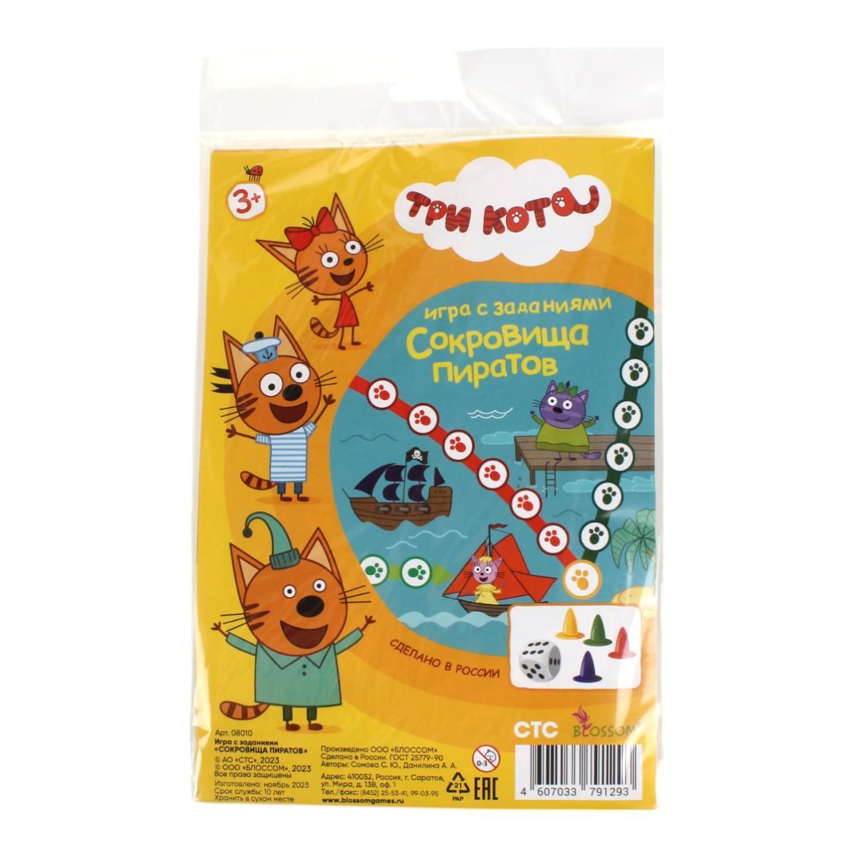 Настольная игра-ходилка "Сокровища пиратов" из серии "Три кота" подарит незабываемые моменты веселья и азарта. Вместе с Коржиком, Карамелькой и Компотом маленькие игроки отправятся на поиски сокровищ, выполняя увлекательные задания.