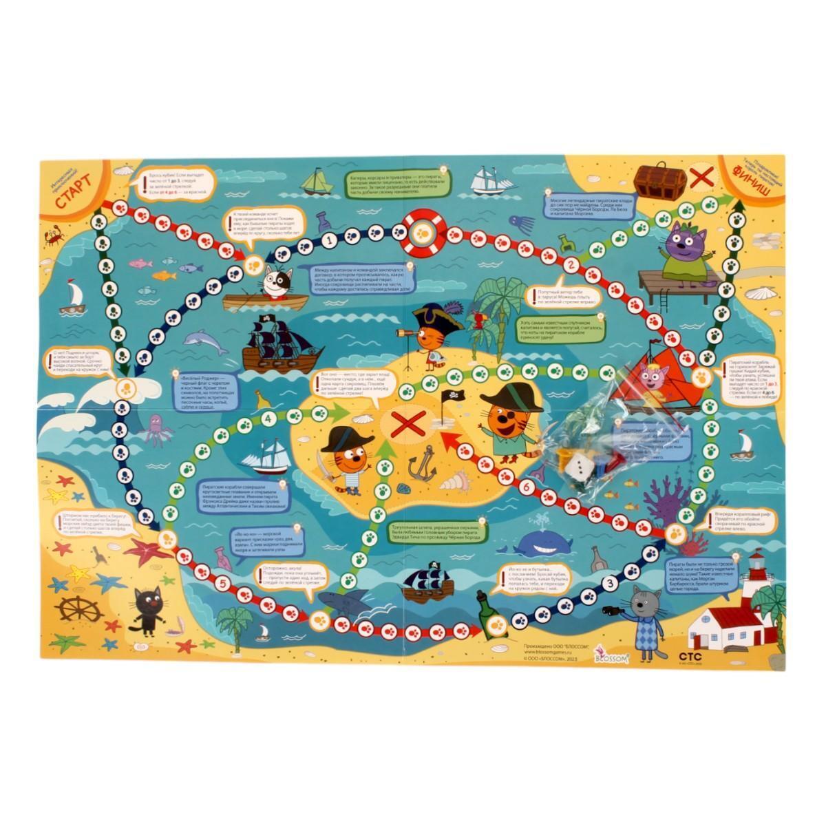 Настольная игра-ходилка "Сокровища пиратов" Три кота, 3+, поле 50х34см