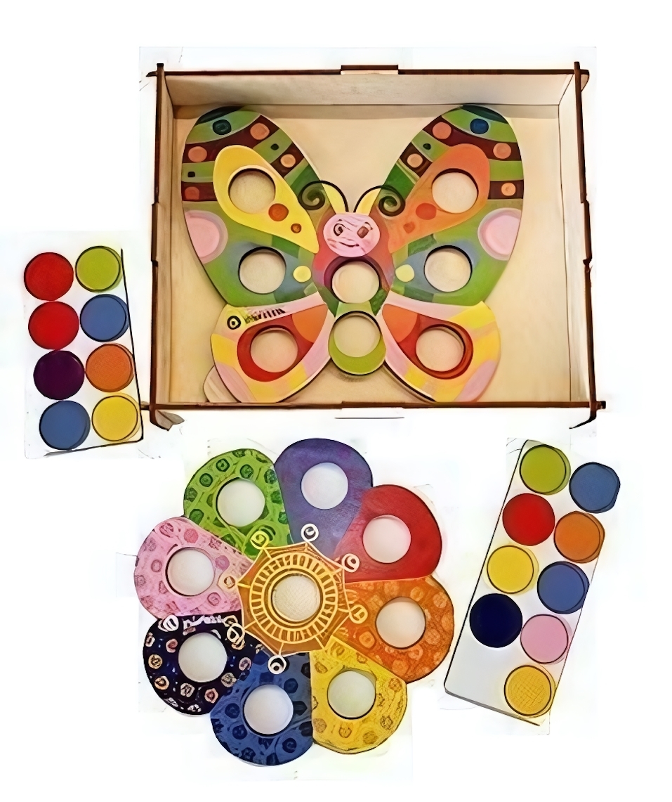- Деревянную основу в форме бабочки с 6 цветными ячейками