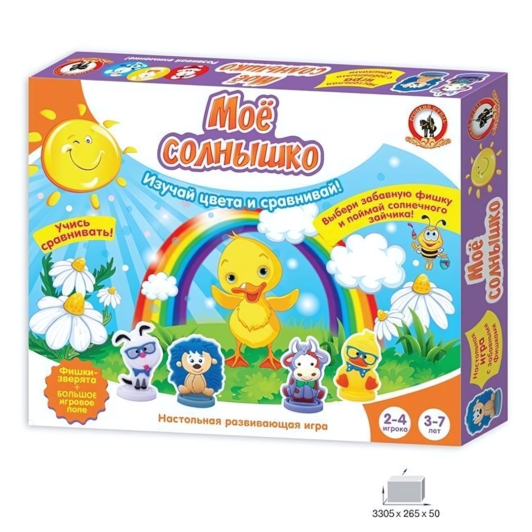 Настольная игра "Мое солнышко": развивающая, изучение цветов, фишки-зверята, 3-7 лет, 2-4 игрока