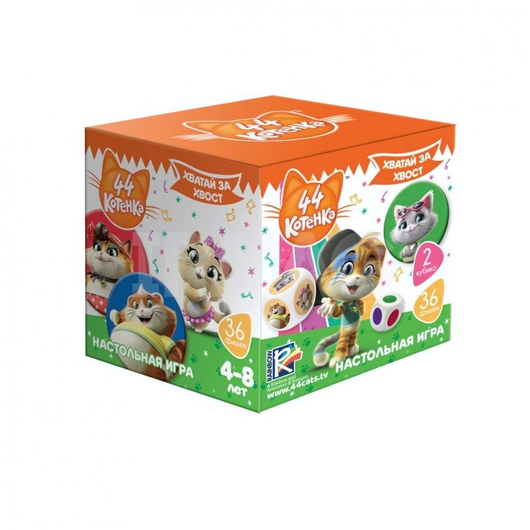Настольная игра Vladi Toys 44 Котенка "Хватай за хвост", для развития внимания и скорости реакции, 2 кубика, 36 карточек