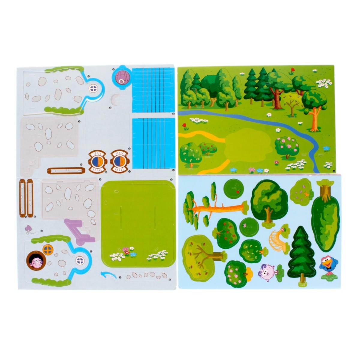 С помощью ярких деталей из прочного картона ваш ребёнок создаст собственный домик Смешарика и начнет собственные истории. Играть легко – без клея, без ножниц, без взрослых рукоприкладных операций.