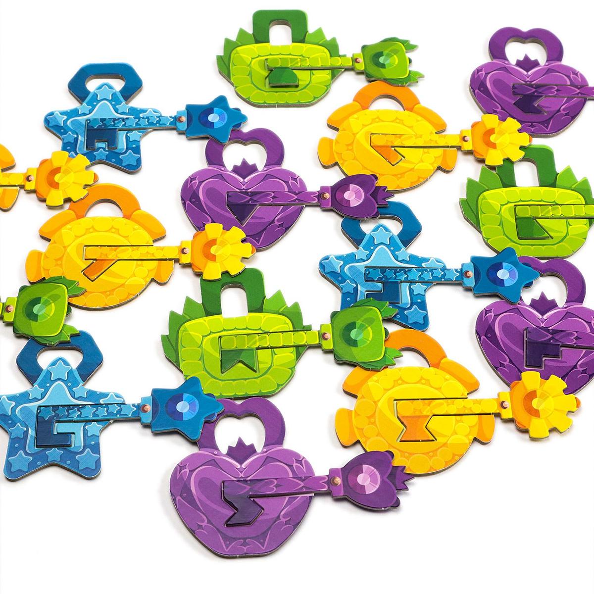- Бросайте кубик и выбирайте ключ нужного цвета