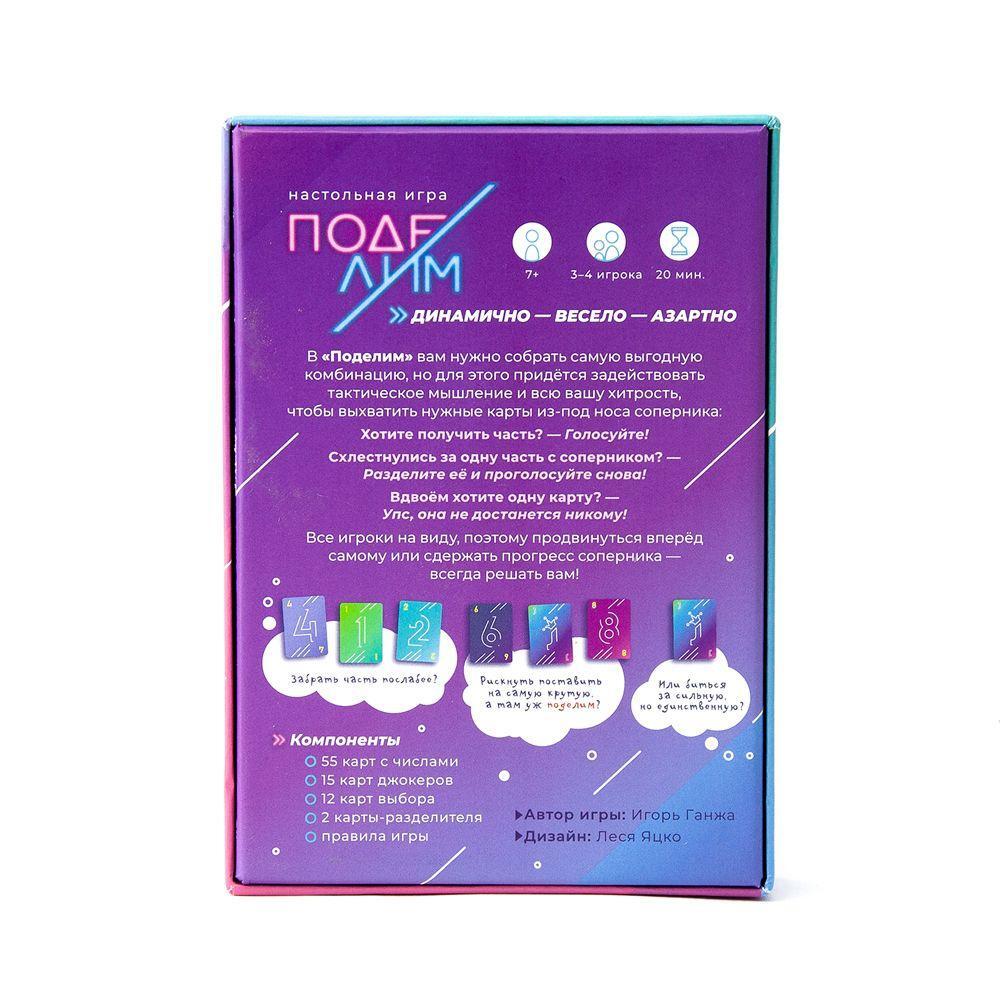 Настольная игра «Поделим»: динамичная карточная для компании, 55 карт с числами, 15 джокеров, 3-4 игрока, от 7 лет