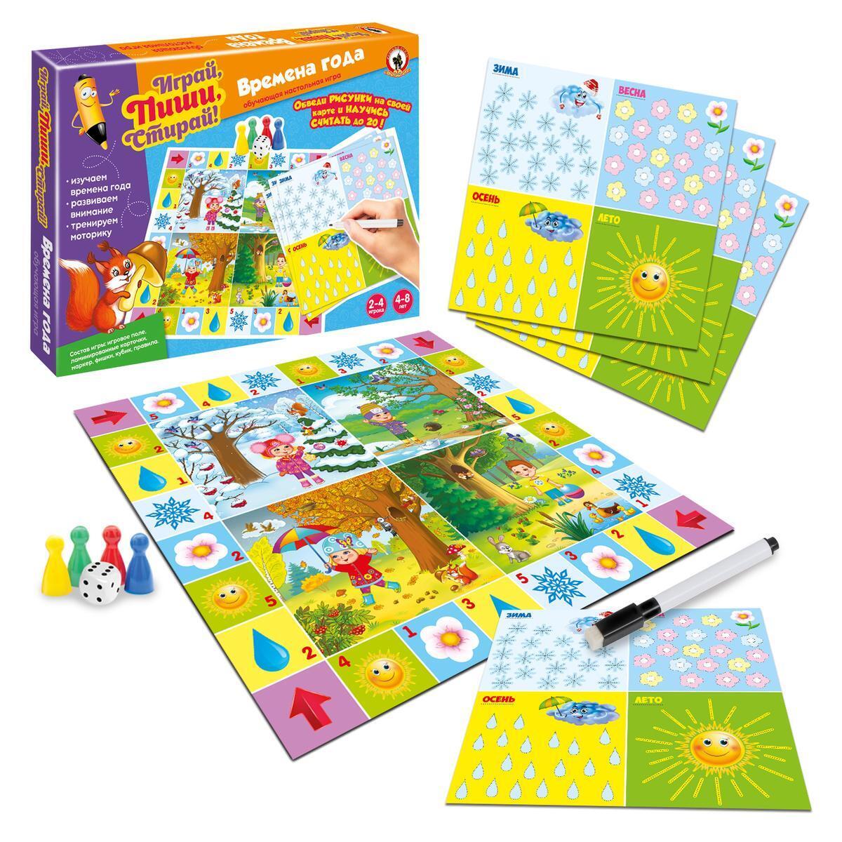 Настольная игра 'Пиши-стирай' Времена года, картон, для детей 3+