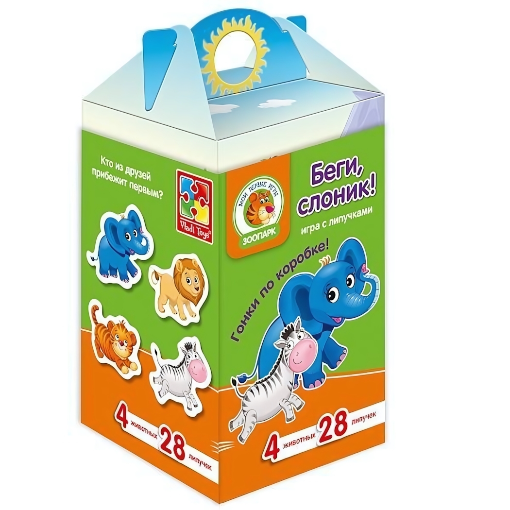 Игра включает 4 мультяшных животных — слона, льва, тигра и зебру, выполнены в ярких цветах. На упаковке указано, что в комплекте 28 липучек, что обеспечивает разнообразие и интересное времяпрепровождение для ребенка. Размеры упаковки позволяют легко брать ее с собой в дорогу или на прогулку.