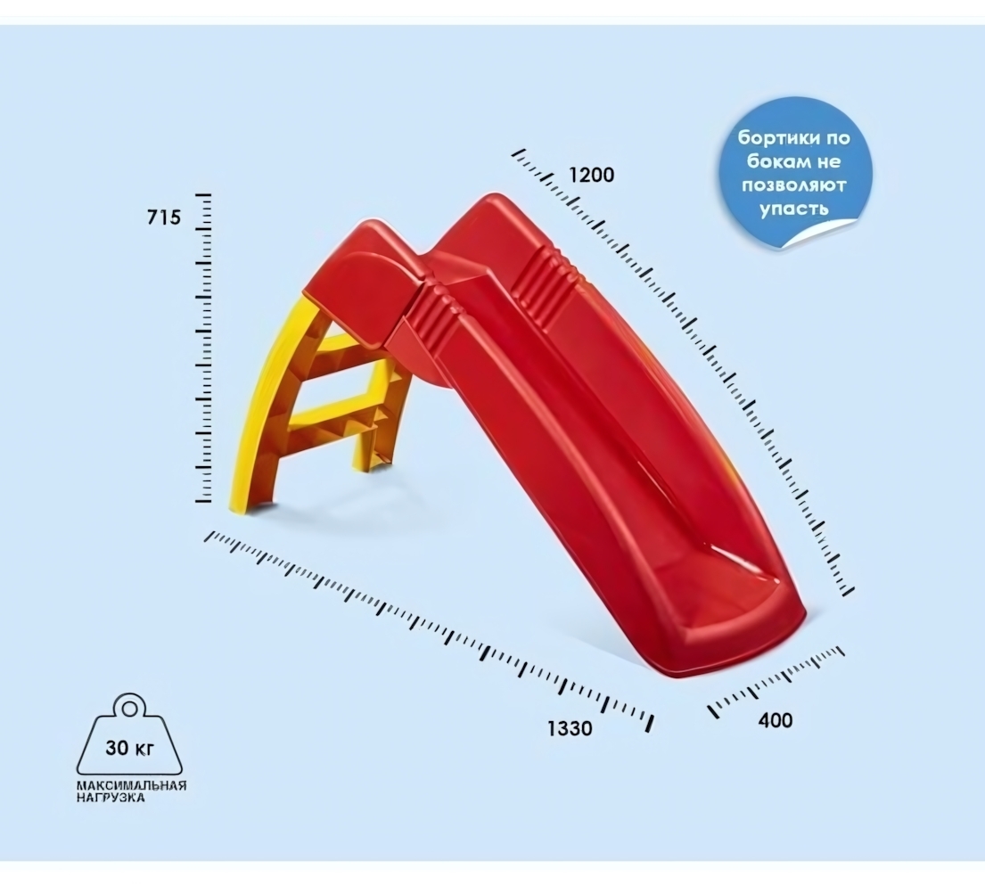 Это отличный выбор для развития моторики и обеспечения активного досуга для детей всех возрастов. Размеры горки: высота 715 мм, длина 1200 мм, ширина 400 мм, максимальная нагрузка 30 кг. Простая в использовании, долговечная и безопасная, она идеально подойдет для вашего малыша.