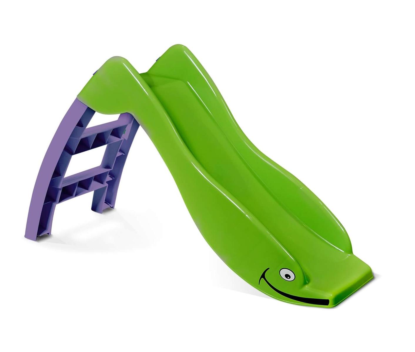 Горка предназначена для детей, которые любят кататься и играть. Ее яркий дизайн в виде улыбающегося дельфина привлечет внимание и создаст атмосферу веселья. Ступеньки горки выполнены в фиолетовом цвете и имеют структуру с несколькими ячейками, что обеспечивает надежное сцепление и безопасность при подъеме.