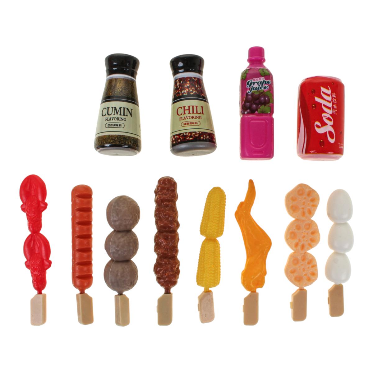 Все элементы выполнены из пластика и имеют яркий, привлекательный дизайн. Крышка гриля открывается, что делает игру более реалистичной: ребёнок может «жарить» продукты, переворачивать шашлыки и угощать гостей.