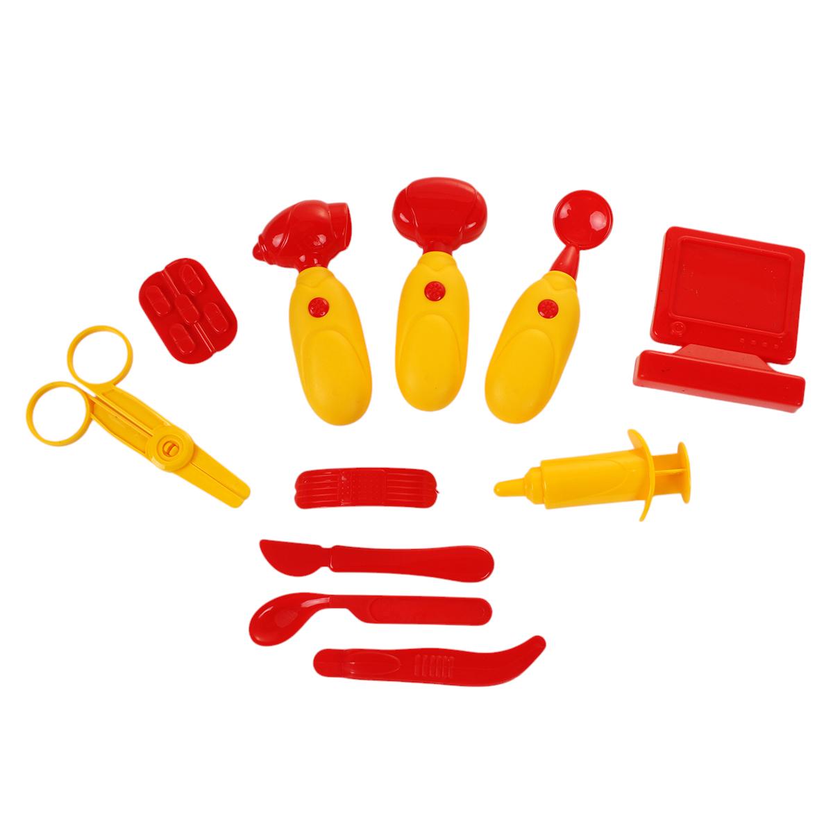 - 20 ярких и безопасных пластиковых аксессуаров: шприц, ножницы, термометр, стетоскоп, ложка, таблетки и многое другое.
