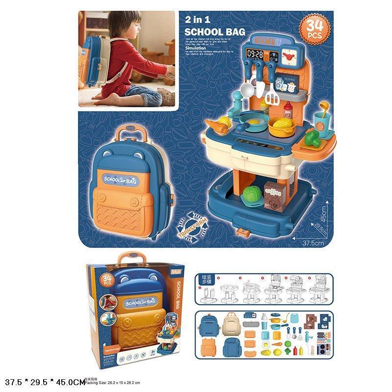 Этот игровой набор подходит для детей, которые любят готовить и экспериментировать с разными блюдами. В комплект входит 34 детали, включая кастрюли, продукты и посуду, что позволяет ребенку создавать настоящие кулинарные шедевры. Рюкзак выполнен в ярких синих и оранжевых цветах и имеет форму животного, что добавляет элемент игры и веселья.